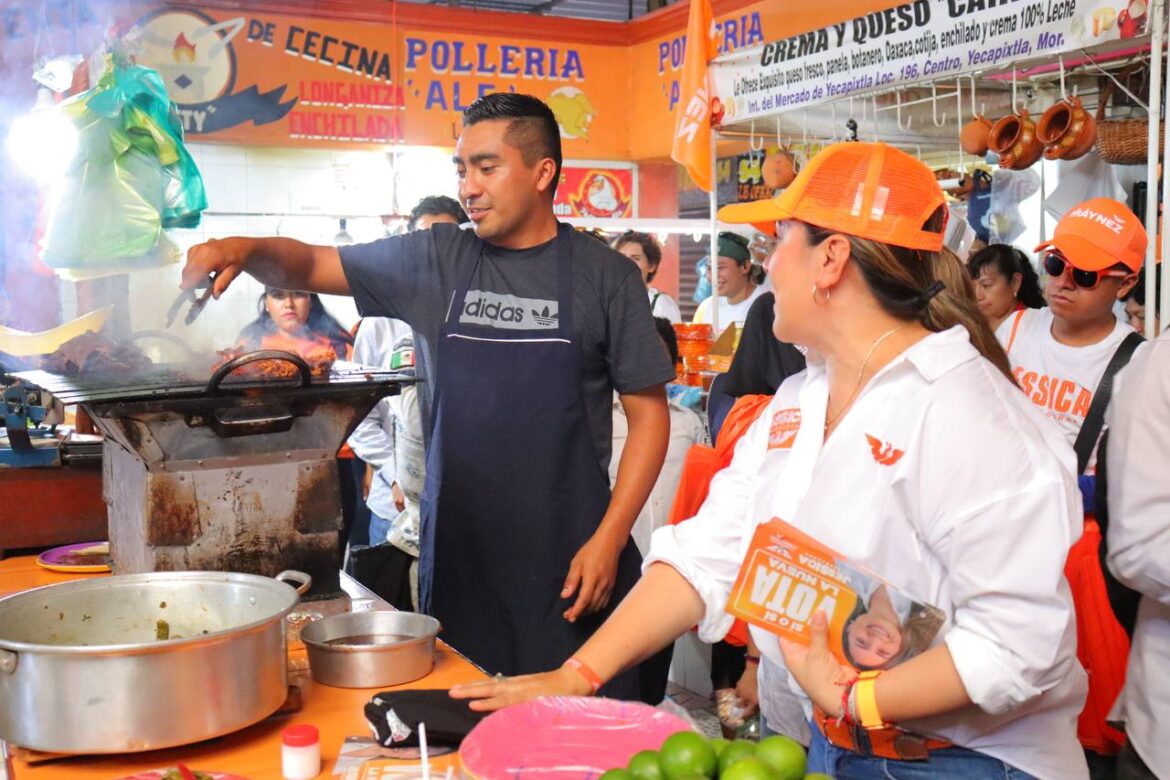 En gira de campaña por el municipio de Yecapixtla, la candidata a la Gubernatura, Jessica Ortega, de la coalición Movimiento Progresa, realizó un recorrido por el Tianguis Ganadero y el mercado municipal de Yecapixtla, para conocer las necesidades de las y los comerciantes.