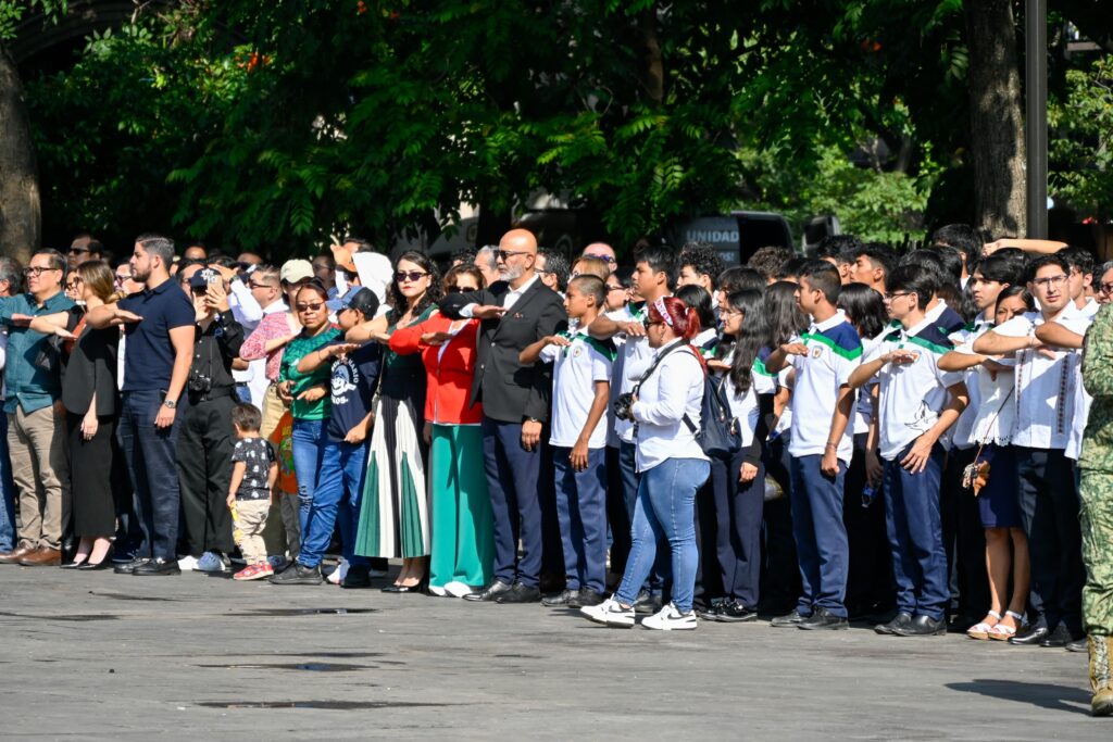 En este acto cívico participaron Javier García Chávez, jefe de la Oficina de la Gubernatura, e integrantes del gabinete, así como los titulares de los poderes Legislativo y Judicial, Isaac Pimentel Mejía y Juan Emilio Elizalde Figueroa, respectivamente; el coronel de Infantería de Estado Mayor, Saúl Jaramillo García, jefe del Estado Mayor de la 24/a Zona Militar; y el general brigadier del Estado Mayor, Raúl Meneses Castrejón, titular de la Coordinación Estatal de la Guardia Nacional.