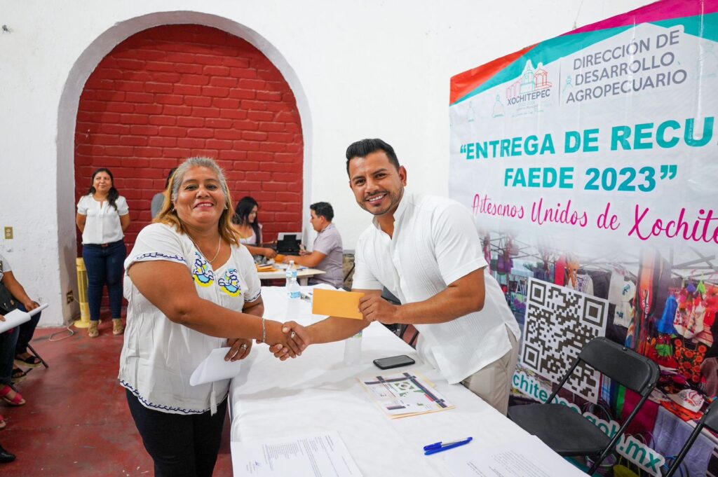 Con el objetivo de seguir fortaleciendo el sector artesanal del municipio, el Ayuntamiento de Xochitepec, presidido por Roberto Gonzalo Flores Zúñiga, “Chalo Flores”, realizó la entrega del Fondo de Aportaciones Estatales para el Desarrollo Económico (FAEDE).