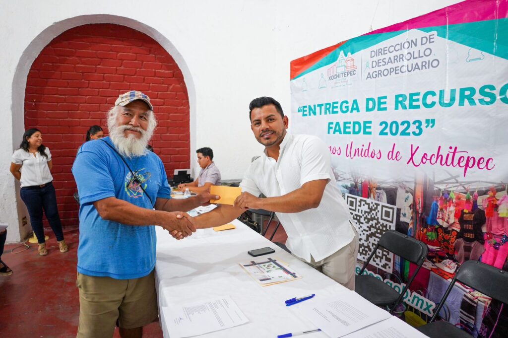 En la entrega de los apoyos FAEDE de este año, participaron además José Refugio Pastrana Avilés, director de Desarrollo Agropecuario de Xochitepec; Daniel Martín Zagal Vázquez, consejero jurídico del Cerro de Las Flores; y Diomira Sugeis Medina Rivera, directora de Industria, Comercio y Licencias de funcionamiento del municipio.