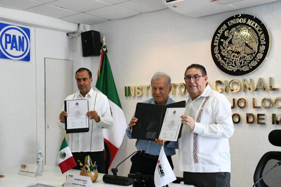 El consejo local en el Estado de Morelos del Instituto Nacional Electoral (INE), otorgó la mañana de este domingo, la constancia como senador electo a Víctor Mercado.