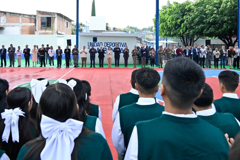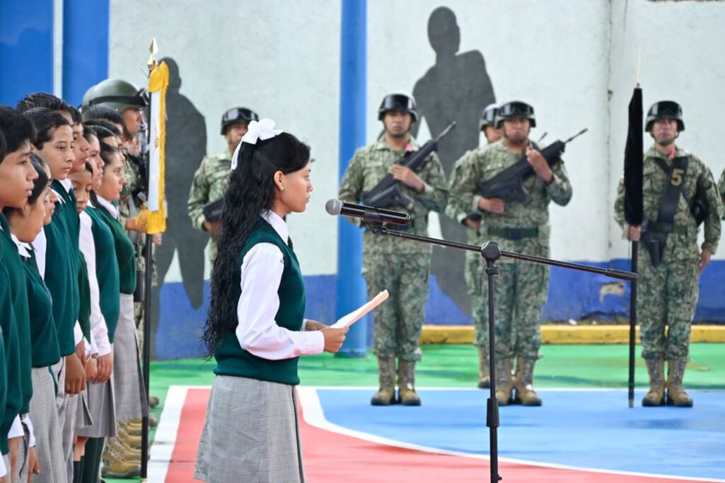 Previo a la conferencia, durante la ceremonia de honores al lábaro patrio, Keidy Dayani Aragón Sánchez, alumna de la Escuela Secundaria Felipe Carrillo Puerto, pronunció un mensaje centrado en el valor cívico de la paz, del cual destacó:
