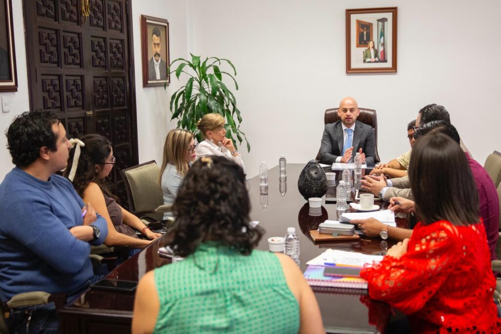 El secretario de Gobierno, Edgar Maldonado sostuvo una reunión de trabajo con las y los consejeros del Instituto Morelense de Procesos Electorales y Participación Ciudadana (Impepac), encabezado por Mireya Gally Jordá.