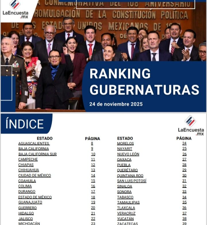 Según la investigación denominada “Ranking Gubernaturas”, realizada por LaEncuesta.mx, la gobernadora de Morelos, Margarita González Saravia, se encuentra ubicada en la posición 15 en el país.