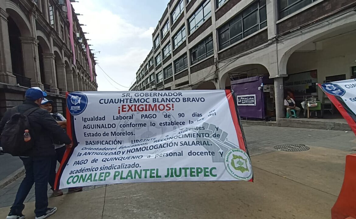 Integrantes del Sindicato de Trabajadores Demócratas del Estado de Morelos (STODEM) realizaron un paro de labores la mañana de este lunes para exigir al gobierno del estado y a los directivos del Conalep justicia laboral.