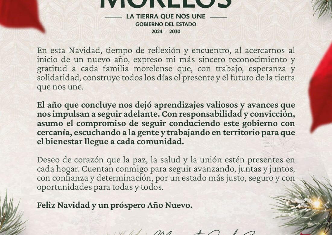 Finalmente, la Gobernadora extendió un mensaje de esperanza para el próximo año: “Feliz Navidad y un próspero Año Nuevo para todas y todos los morelenses”.