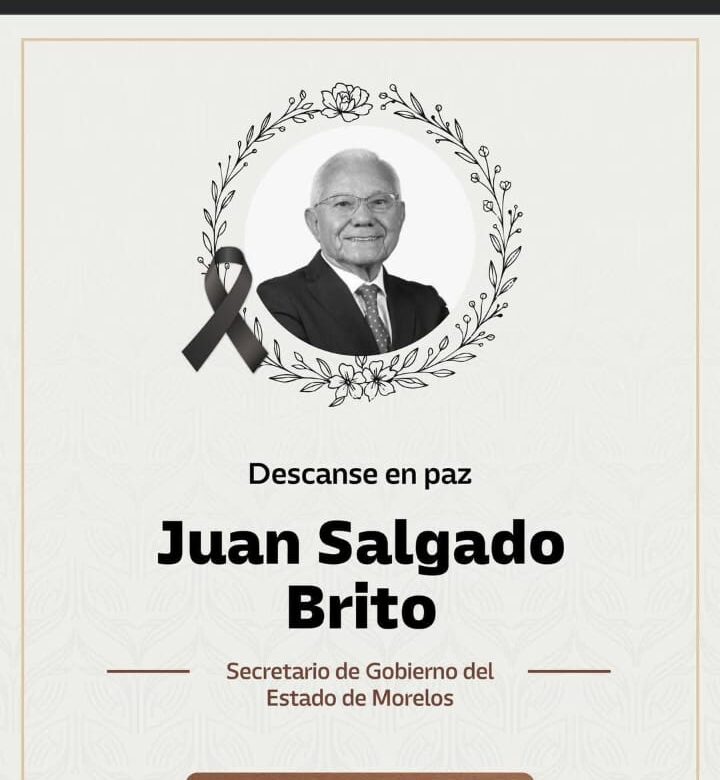 “Lamento profundamente el fallecimiento del doctor Juan Salgado Brito, secretario de Gobierno del estado de Morelos. Un hombre de profundas convicciones, comprometido con el desarrollo de Morelos y con las causas sociales, que marcaron su trayectoria.