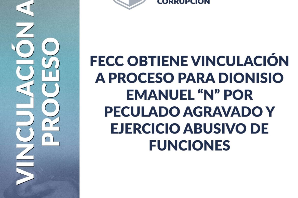La Fiscalía Especializada en Combate a la Corrupción (FECC) obtuvo un auto de vinculación a proceso en contra de Dionisio Emanuel “N”, por su probable participación en los delitos de peculado agravado y ejercicio abusivo de funciones, en perjuicio del Ayuntamiento de Cuautla.