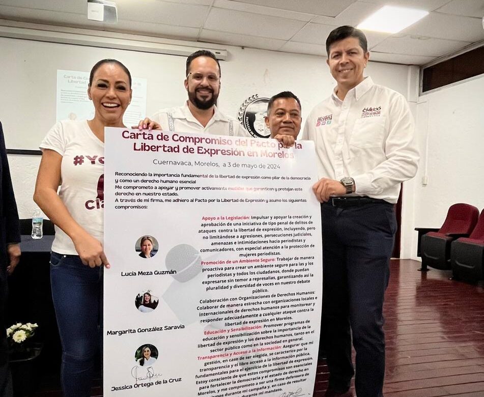 Tras firmar la carta compromiso del Pacto por la Libertad de Expresión en Morelos ante representantes de diversos medios de comunicación, el candidato al Primer Distrito por Cuernavaca por Morena y pàrtidos aliados, Sergio “Checo” Pérez Flores se comprometió a impulsar desde el Congreso de Morelos una agenda legislativa que garantice los derechos de los representantes de los medios de comunicación y la libertad de expresión en la entidad.