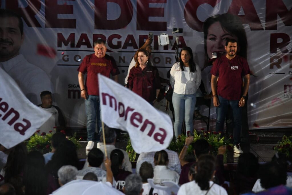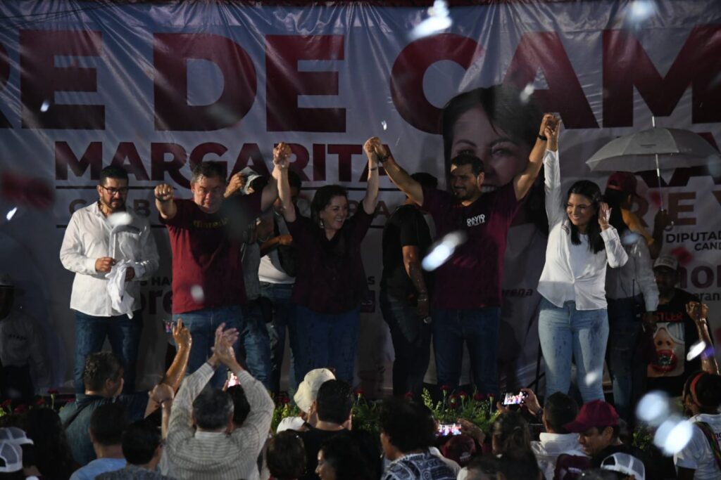 Con un enérgico llamado a mantenerse firmes en la lealtad y promoción al voto a favor de MORENA, Margarita González Saravia, candidata a la gubernatura de Morelos, cerró campaña, la tarde de este domingo, junto a Rafa Reyes, David Ortiz y Melisa Montes de Oca.