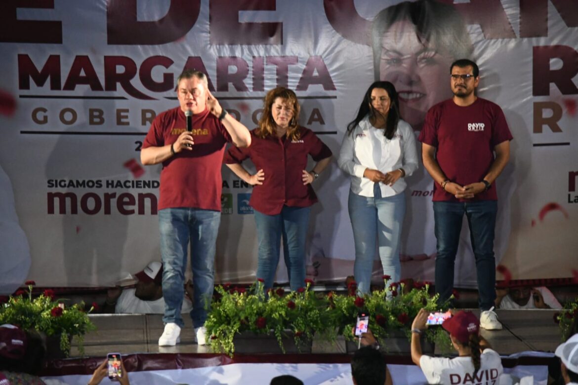 Con un enérgico llamado a mantenerse firmes en la lealtad y promoción al voto a favor de MORENA, Margarita González Saravia, candidata a la gubernatura de Morelos, cerró campaña, la tarde de este domingo, junto a Rafa Reyes, David Ortiz y Melisa Montes de Oca.