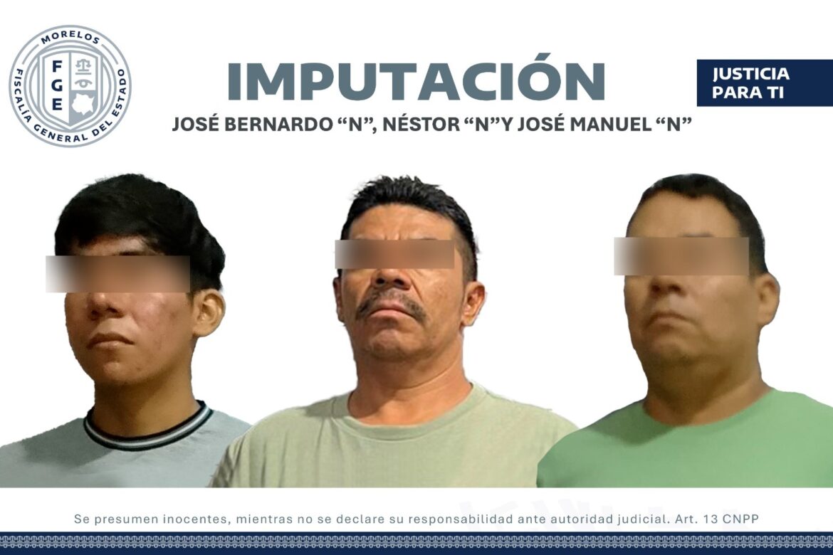 La Fiscalía Regional Oriente, a través del agente del Ministerio Público llevó ante el juez a José Bernardo “N”, José Manuel “N” y Néstor “N”, a quienes les formuló imputación por la probable comisión de delito contra la salud en su modalidad de narcomenudeo, tras ser detenidos durante un cateo en un inmueble presuntamente utilizado para la venta de estupefacientes en el municipio de Ayala.