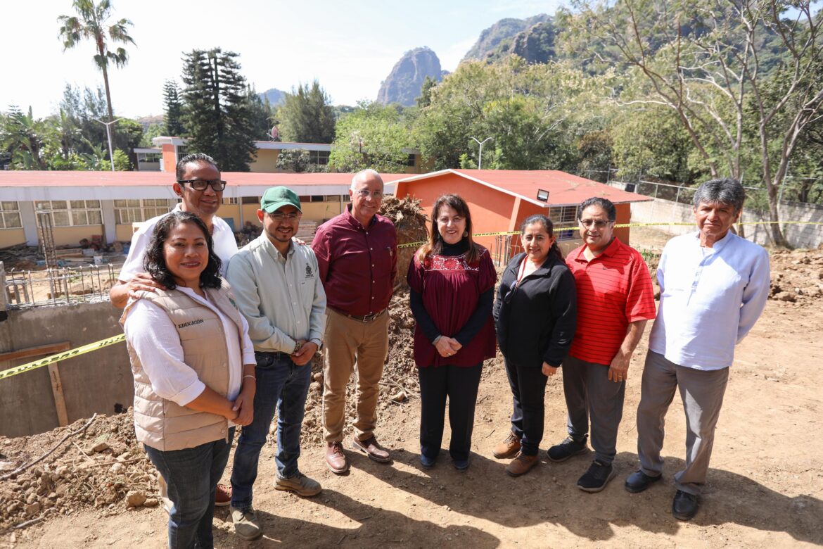 La gobernadora Margarita González Saravia visitó el municipio de Tepoztlán para supervisar obras de infraestructura educativa y agua potable que su administración impulsa en beneficio de las familias del Pueblo Mágico.