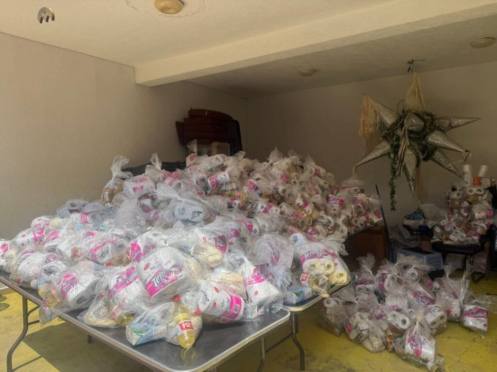 El presidente de la Asociación, Arnulfo Montes Cuen encabezó el evento que reunió a 150 coordinadores municipales en los Jardines de la Fundación de dónde salieron con 10 Mil paquetes alimentarios que contienen medicina, vitaminas y agua purificada, entre otros artículos, para beneficiar a familias de colonias populares y zonas rurales del Estado.