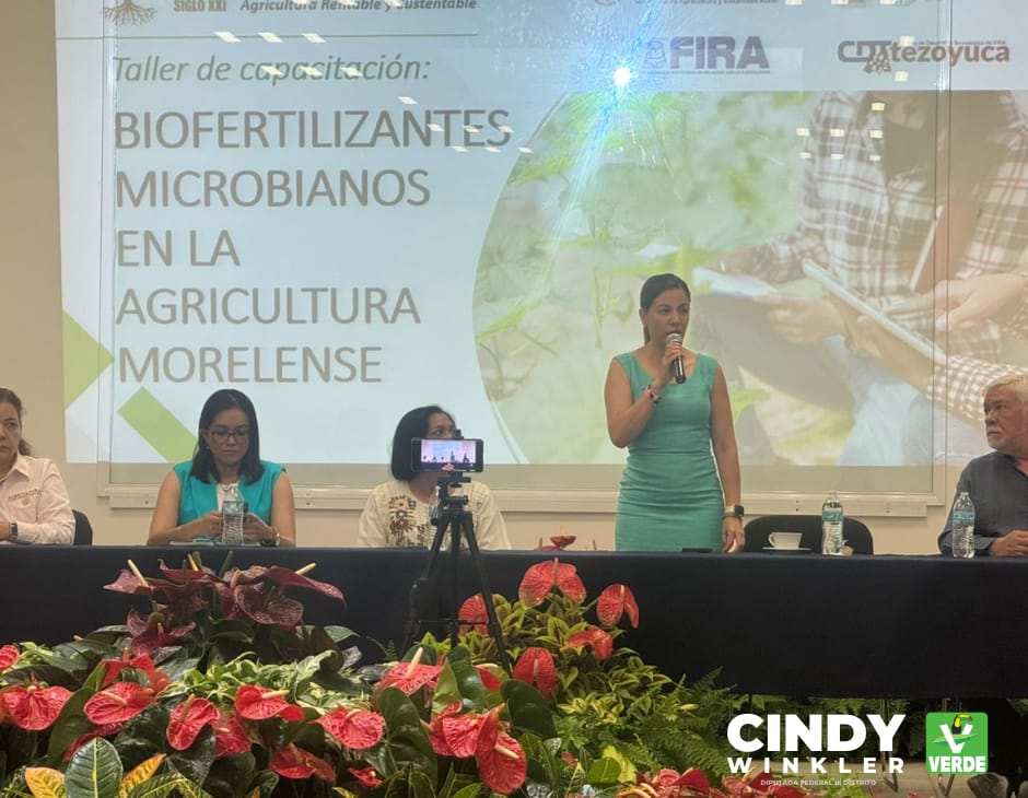 Tezoyuca, Morelos, 24 de julio de 2025.- Como parte de los esfuerzos que desde el Congreso de la Unión se promueven para fortalecer al campo mexicano, la diputada federal Cindy Winkler Trujillo, del Partido Verde Ecologista de México, celebró la realización del Taller sobre el uso de biofertilizantes microbianos, llevado a cabo en el municipio de Tezoyuca, Morelos.