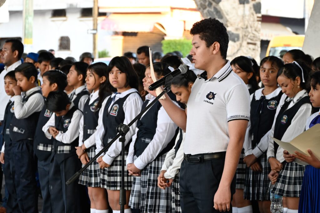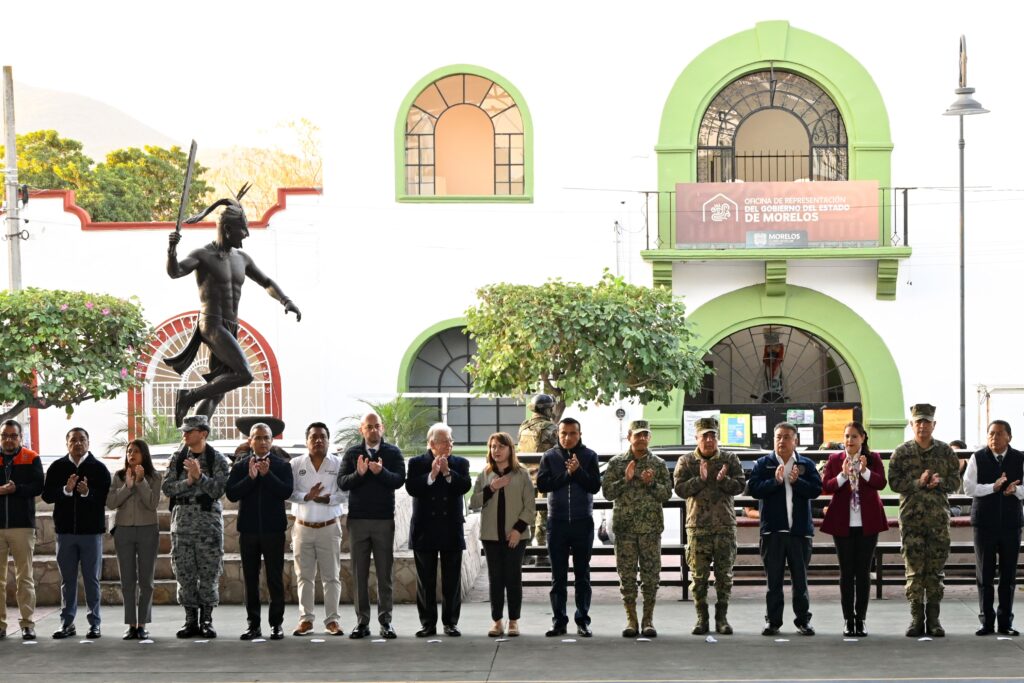 Antes de la conferencia, la mandataria encabezó la Mesa de Coordinación Estatal para la Construcción de Paz y Seguridad, además de participar en los honores a la bandera junto a estudiantes de la región sur.