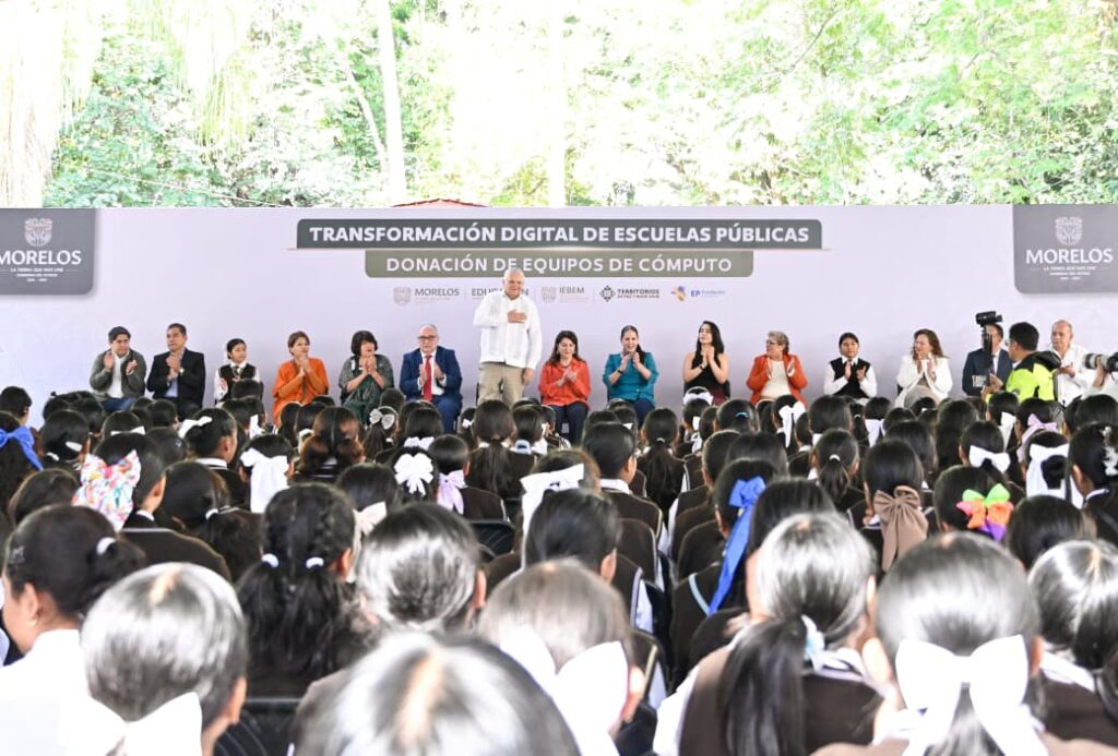 La gobernadora de Morelos, Margarita González Saravia, encabezó la entrega de mil 500 computadoras que beneficiarán a más de 15 mil estudiantes de 87 escuelas públicas, principalmente en comunidades rurales incluidas en la estrategia Territorios de Paz y Buen Vivir.