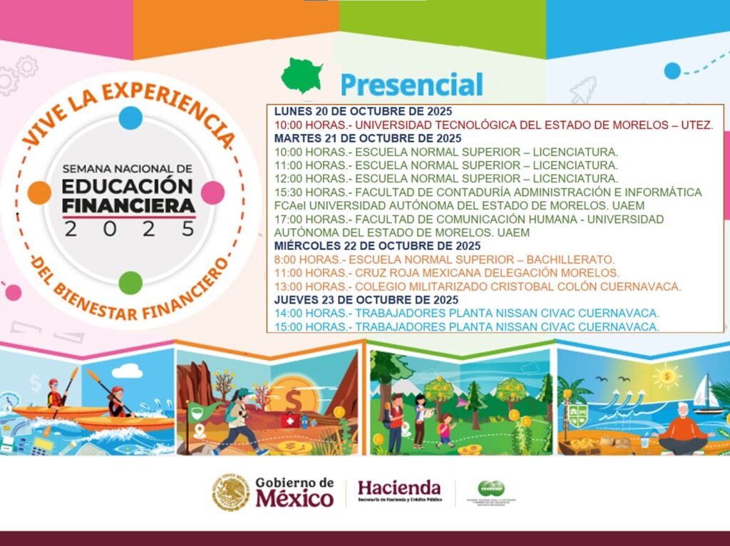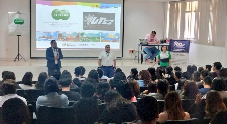 Con una entusiasta participación de alumnos se llevó a cabo el inicio de los trabajos a la Semana Nacional de Educación Financiera 2025 SNEF CONDUSEF Morelos, en las instalaciones de la Universidad Tecnológica Emiliano Zapata UTEZ, con la asistencia de 120 alumnos de las especialidades de Administración de capital humano y negocios y mercadotecnia, inicia de manera presencial el evento más importante en América para fomentar la Educación Financiera entre la sociedad usuaria de servicios financieros. Con el lema “Vive el Bienestar Financiero” los jóvenes adquirieron conocimientos sobre cultura y Educación Financiera cómo modalidad transversal, lo que pueden aplicar tanto para su futura vida laboral, así como en el ámbito familiar, con información de aprender a Manejar su dinero. Impulsar el ahorro. Evitar el sobreendeudamiento y Conocer las herramientas comparativas que les ayudarán a tomar decisiones informadas para su bienestar financiero. Con estas actividades se da inicio al ciclo de conferencias presenciales en el Estado de Morelos en las que instituciones educativas públicas, privadas, de nivel medio superior o superior como la UAEM con la Facultad de Contaduría Administración e Informática y la Facultad de Comunicación Humana, la Universidad Politécnica, Cámaras empresariales, como CANACINTRA, COPARMEX, Organismos asistenciales como la Cruz Roja Mexicana y el apoyo del Gobierno del Estado a través de las secretarias de Educación y Turismo para evitar caer en errores que nos lleven a padecer problemas financieros derivados del desconocimiento del Sistema Financiero Mexicano y la utilización de productos y servicios financieros.