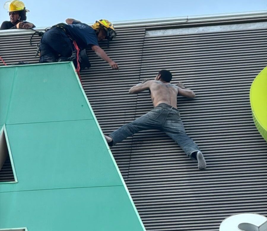 La oportuna intervención de Bomberos y elementos de la Secretaría de Protección y Auxilio Ciudadano (SEPRAC) de Cuernavaca permitió atender a tiempo el reporte de una persona en la parte alta de las letras de una tienda departamental, ubicada en la colonia Lomas de la Selva.