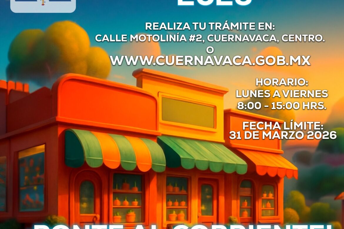 El Ayuntamiento de Cuernavaca, a través de la Dirección de Licencias de Funcionamiento de la Secretaría de Desarrollo Económico y Turismo (SDEyT), invita a las y los ciudadanos contribuyentes a realizar el refrendo de sus licencias de funcionamiento correspondiente al ejercicio fiscal 2026, conforme a lo establecido en la Ley de Ingresos vigente.