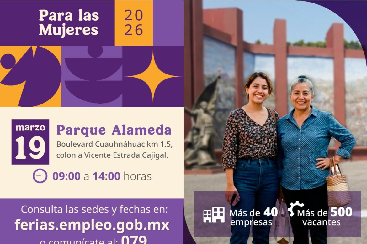 Con el objetivo de ampliar las oportunidades de empleo y fortalecer la inclusión laboral, el Gobierno de Morelos, encabezado por Margarita González Saravia, a través de la Secretaría de Desarrollo Económico y del Trabajo (SDEyT) y el Servicio Nacional de Empleo (SNE) Morelos, en coordinación con la Secretaría de las Mujeres y el Ayuntamiento de Cuernavaca, realizará la Feria Nacional de Empleo para las Mujeres 2026 en la capital del estado.