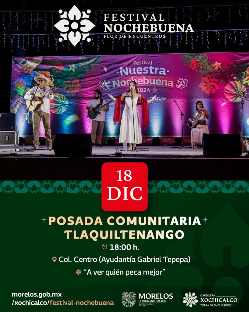 Para el 17 de diciembre, la posada tendrá lugar en Yautepec, colonia La Joya, con la presentación de “Diablo que canta no muerde”. El 18 la celebración llegará a Tlaquiltenango, en la colonia Centro, donde se presentará “A ver quién peca mejor”.