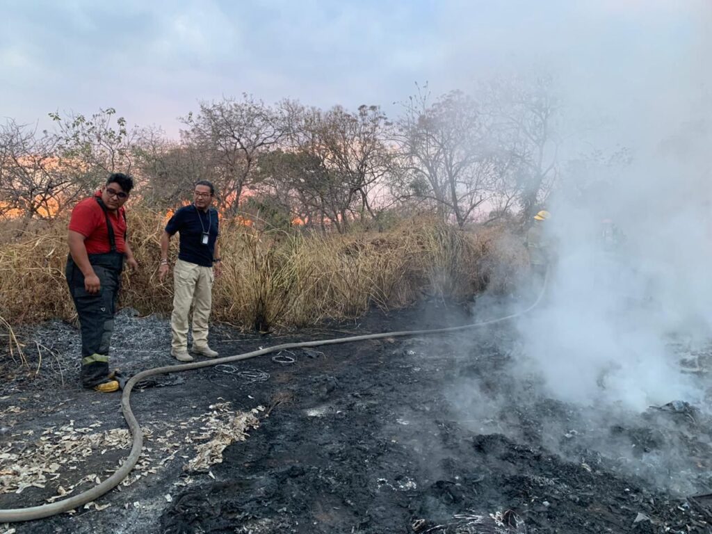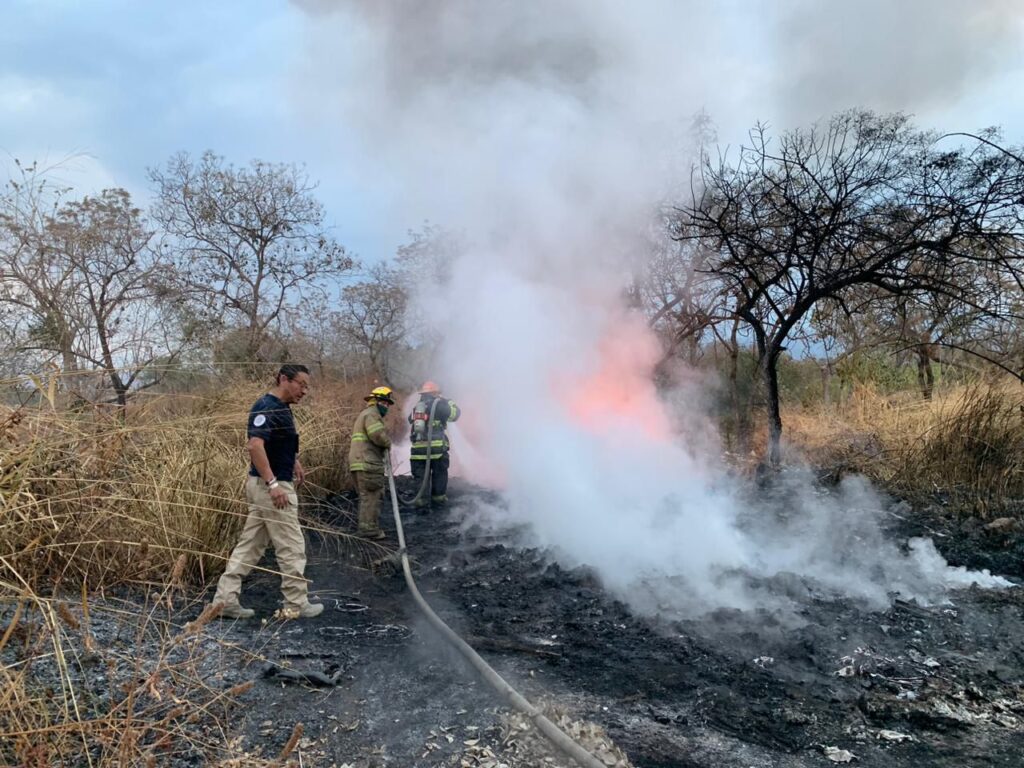Personal de Protección Civil de Jiutepec apoya con una pipa de agua y dos unidades para controlar el siniestro, en el que se queman llantas y plásticos. Protección Civil de Tepoztlán también se unió a los trabajos para sofocar el incendio.