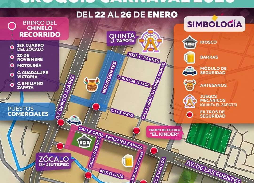 Revisa el croquis para que puedas disfrutar al máximo del Carnaval Jiutepec 2026. 🎉