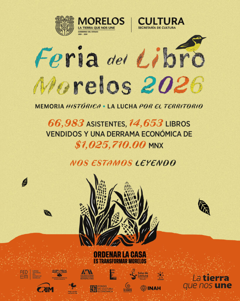 El Gobierno de Morelos, que encabeza Margarita González Saravia, a través de la Secretaría de Cultura, informó que concluyó con resultados positivos la Feria del Libro Morelos 2026 “Memoria histórica, la lucha por el territorio”, encuentro que durante cinco días convirtió el corazón de Cuernavaca en un espacio de diálogo, lectura y convivencia pública.