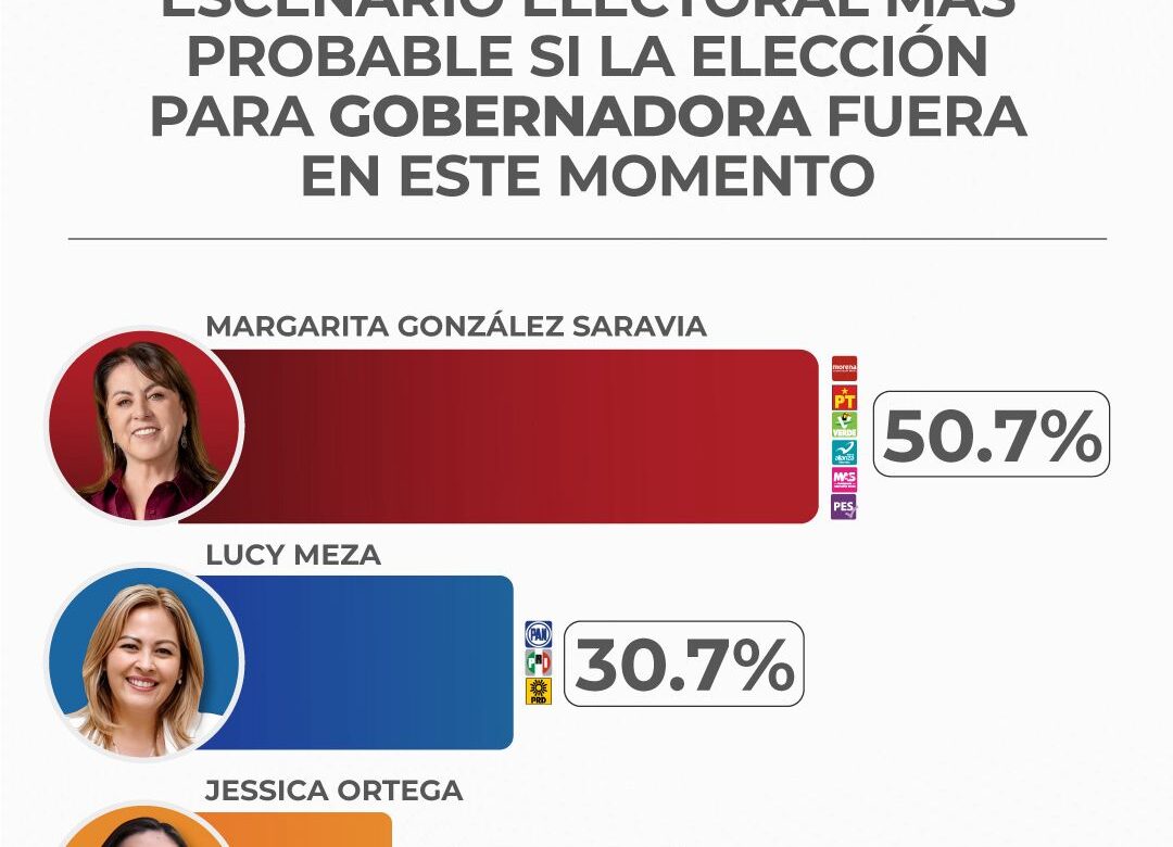 Margarita González Saravia, con doble dígito de ventaja: Meba