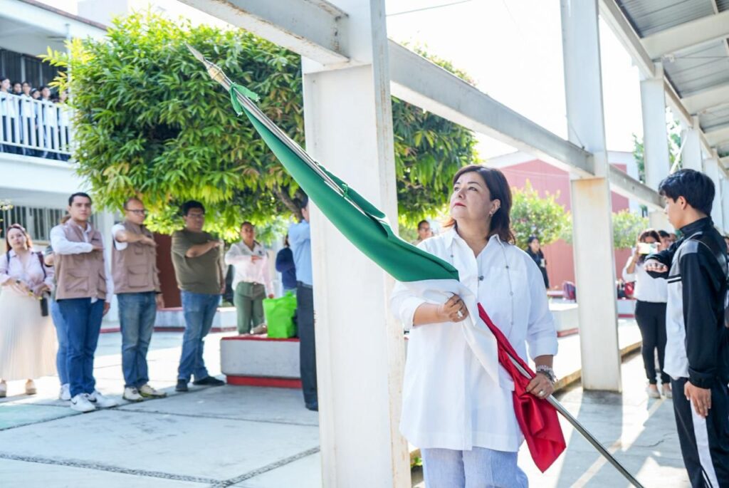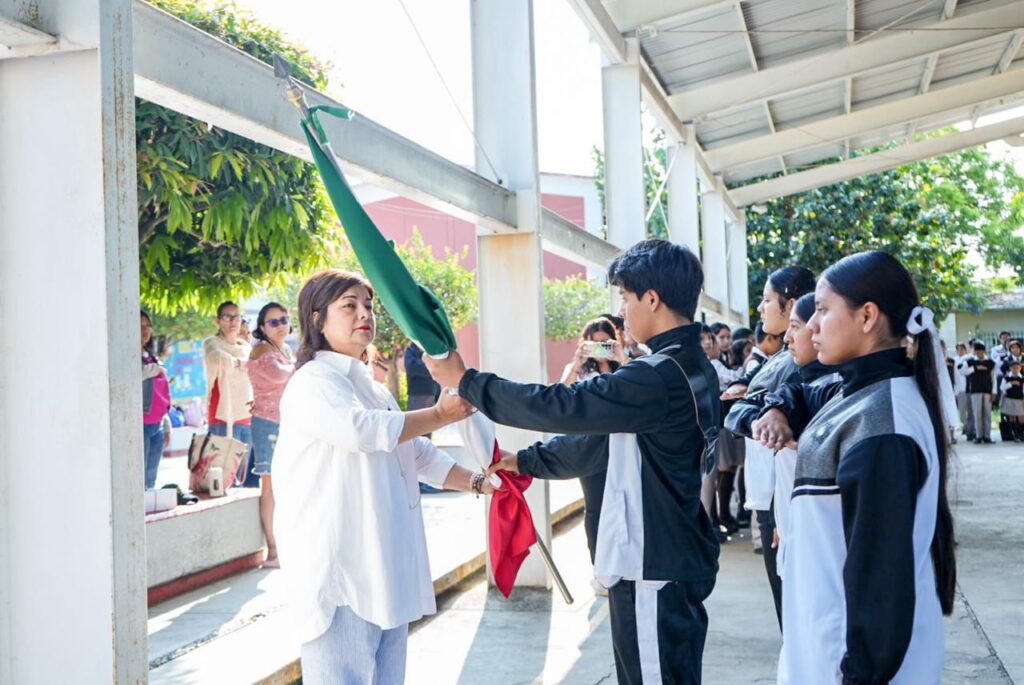 Tras participar en la ceremonia de honores a la bandera, la diputada convivió con la comunidad educativa, reconociendo la labor de docentes, directivos y autoridades escolares en la formación de las nuevas generaciones.