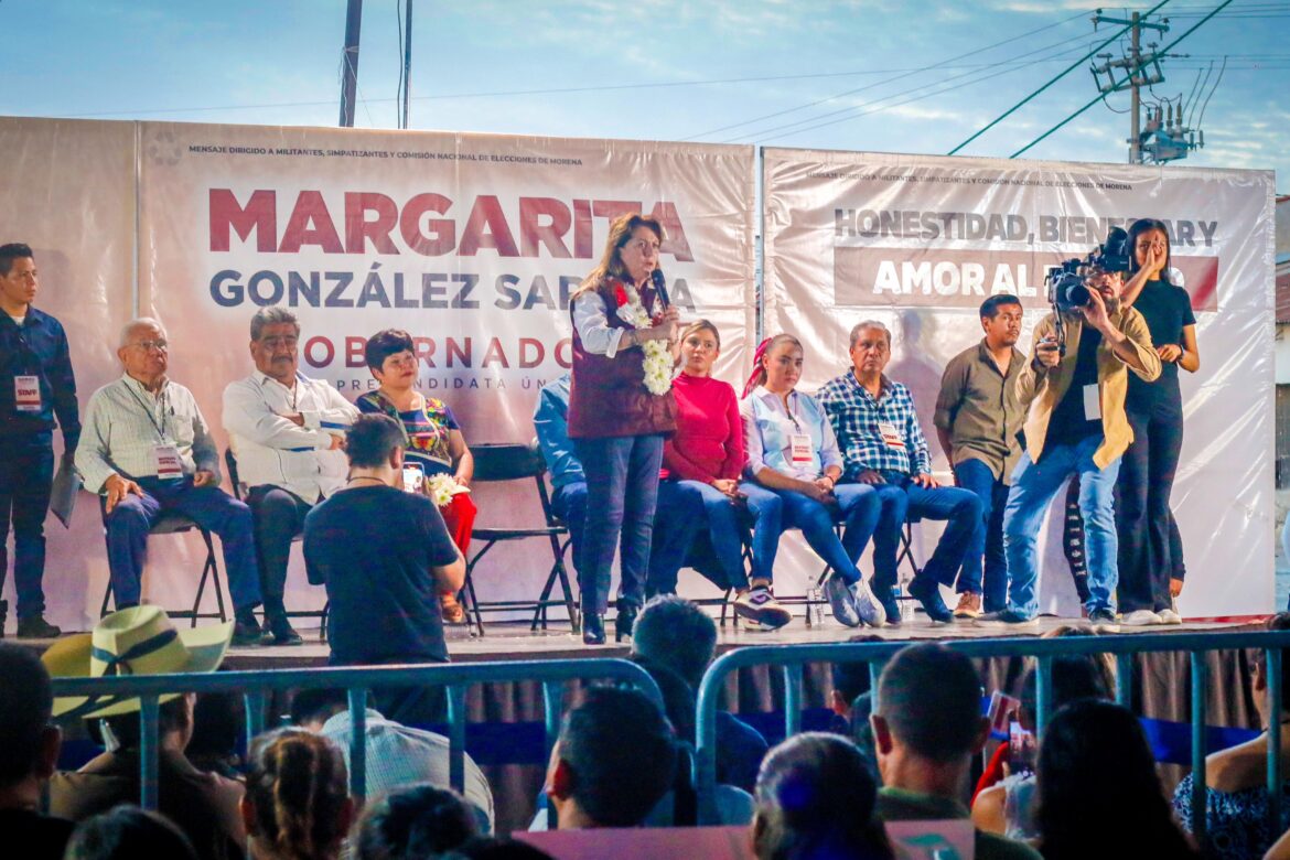 En el municipio más grande de Morelos, Margarita González Saravia, precandidata única de Morena a la gobernatura estatal, recordó que durante los dos años y medio de recorridos por el estado, sus visitas a Tlalquiltenango han ido ascendiendo en número de simpatizantes, lo que representa un avance a favor del partido guinda.