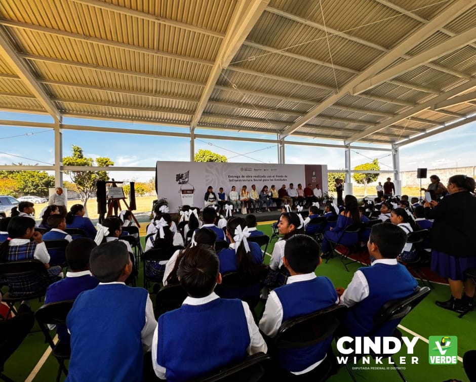 Cuautla, Morelos, a 23 de enero de 2026.- La diputada federal Cindy Winkler Trujillo asistió a la inauguración de la techumbre metálica en la explanada de usos múltiples de la Escuela Primaria “Adolfo López Mateos”, ubicada en la comunidad de Xalostoc, municipio de Ayala, una obra que contribuye a mejorar las condiciones de aprendizaje y convivencia de niñas y niños.