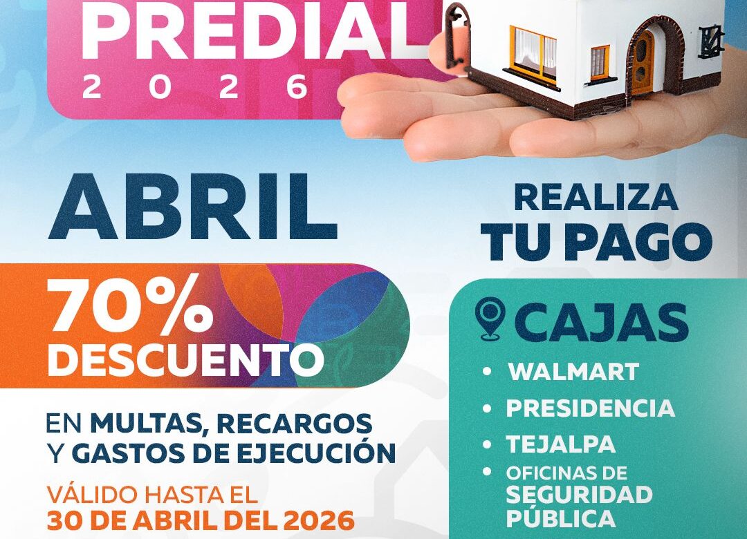 El Ayuntamiento de Jiutepec te invita a aprovechar la campaña de descuento predial en: