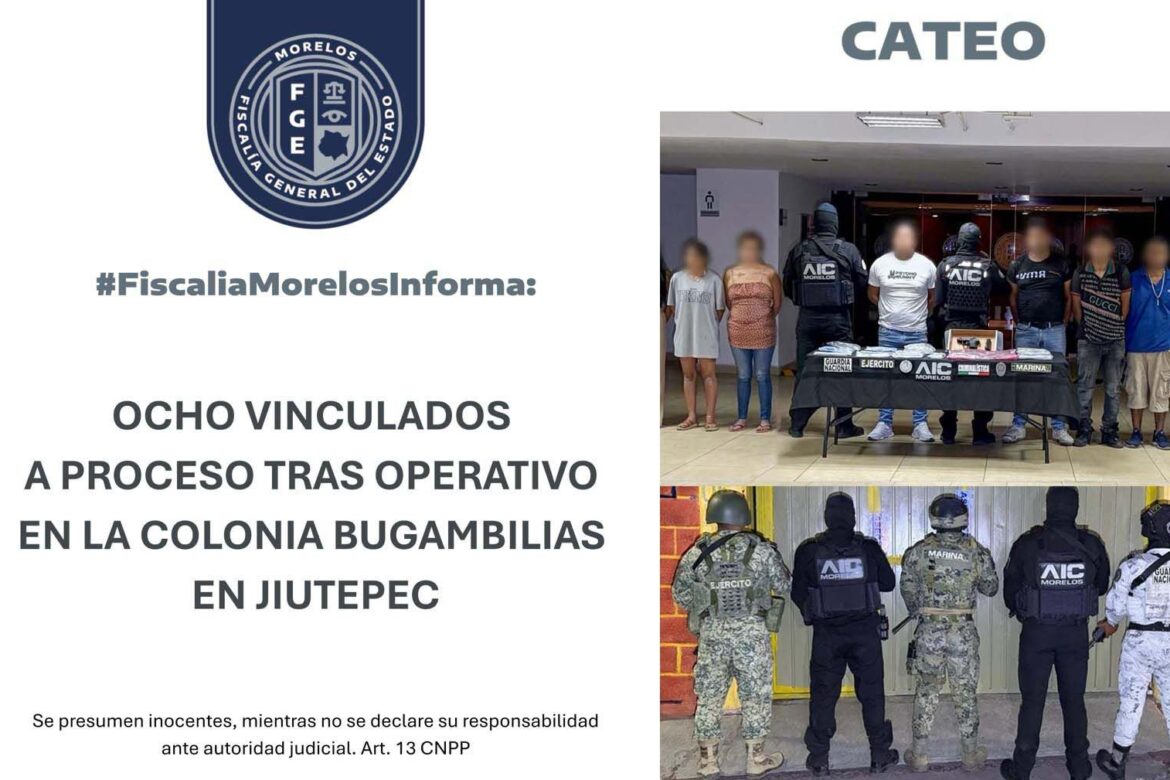 La Fiscalía Regional Metropolitana obtuvo un auto de vinculación a proceso en contra de ocho personas, por la probable comisión de delitos contra la salud en su modalidad de posesión simple, tras ser detenidos durante un operativo en la colonia Bugambilias, municipio de Jiutepec.