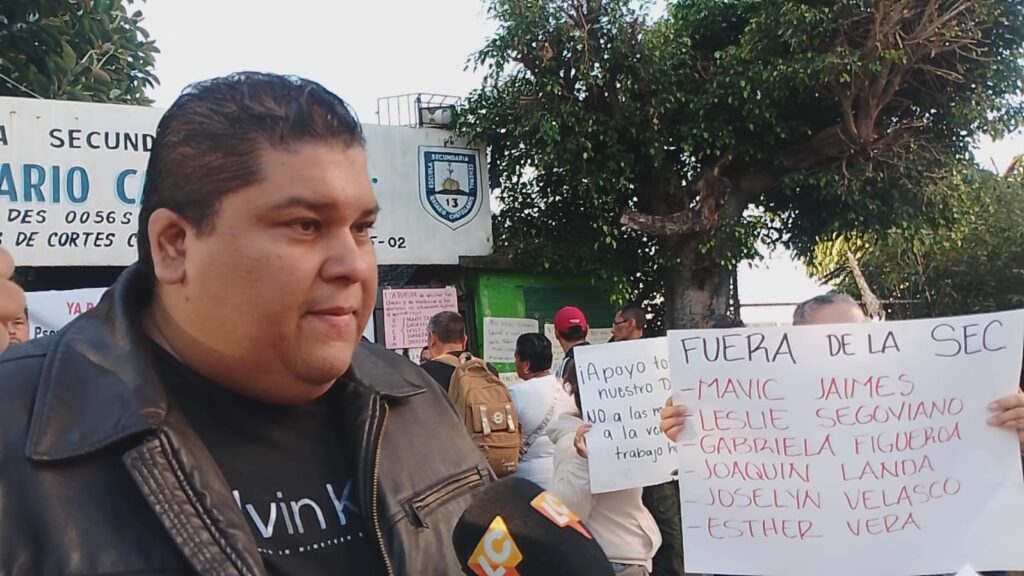A nombre de los inconformes, Rolando Soberanis, expuso que la problematica en el plantel ya es insostenible y afecta a sus maestros, con acoso laboral y a los alumnos, incitandolos a agredir al director del plantel.