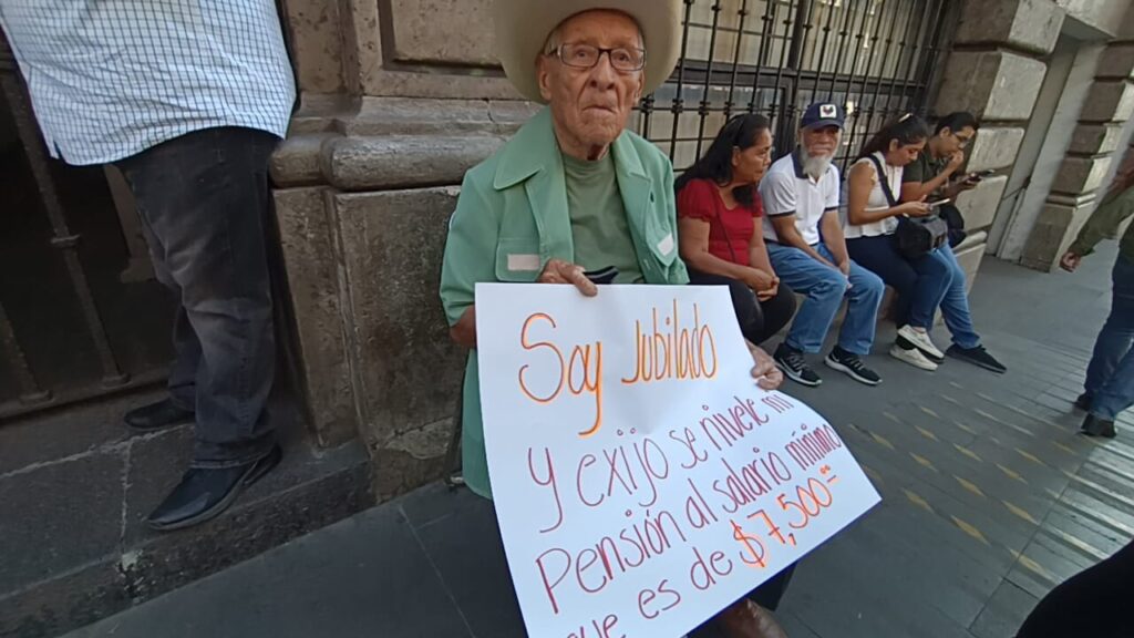 Con pancartas en las manos y sus años con pancartas en las manos, los miembros de la agrupación, que encabeza Baldomero Díaz Sotelo –todos, personas de la tercera edad–, urgieron al gobierno del Estado un salario digno.