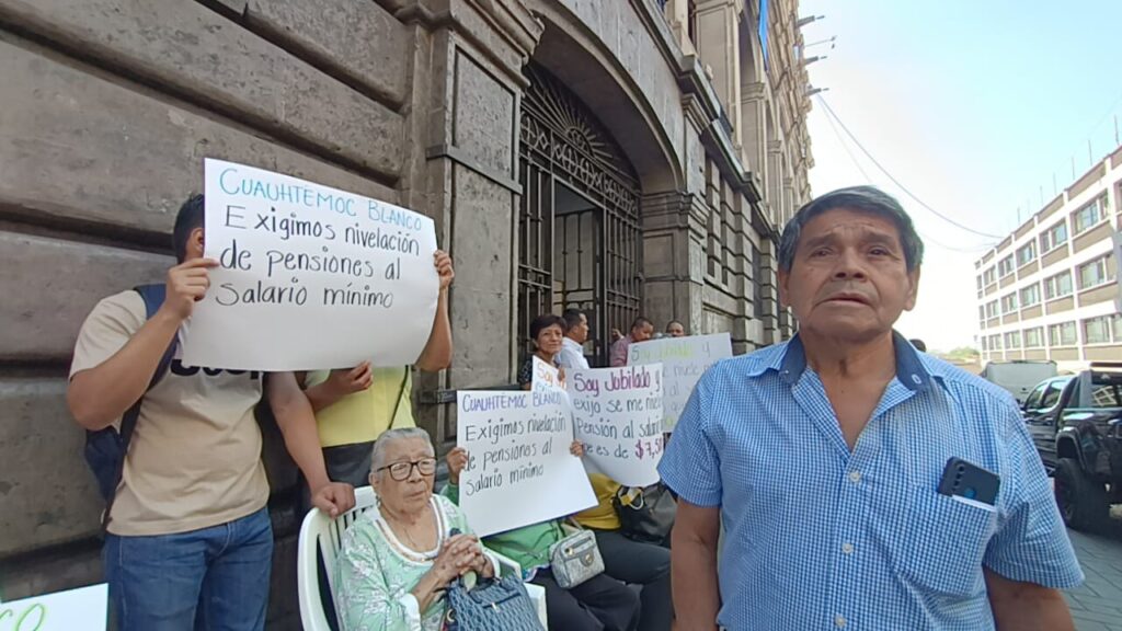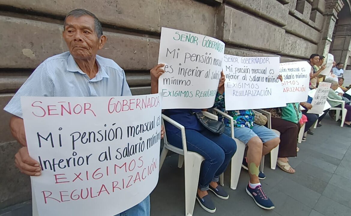 Integrantes de la Asociación de Trabajadores Jubilados y Pensionados del Gobierno del Estado, se manifestaron la mañana de este jueves a las puertas del palacio de gobierno para exigir un pago salarial justo.