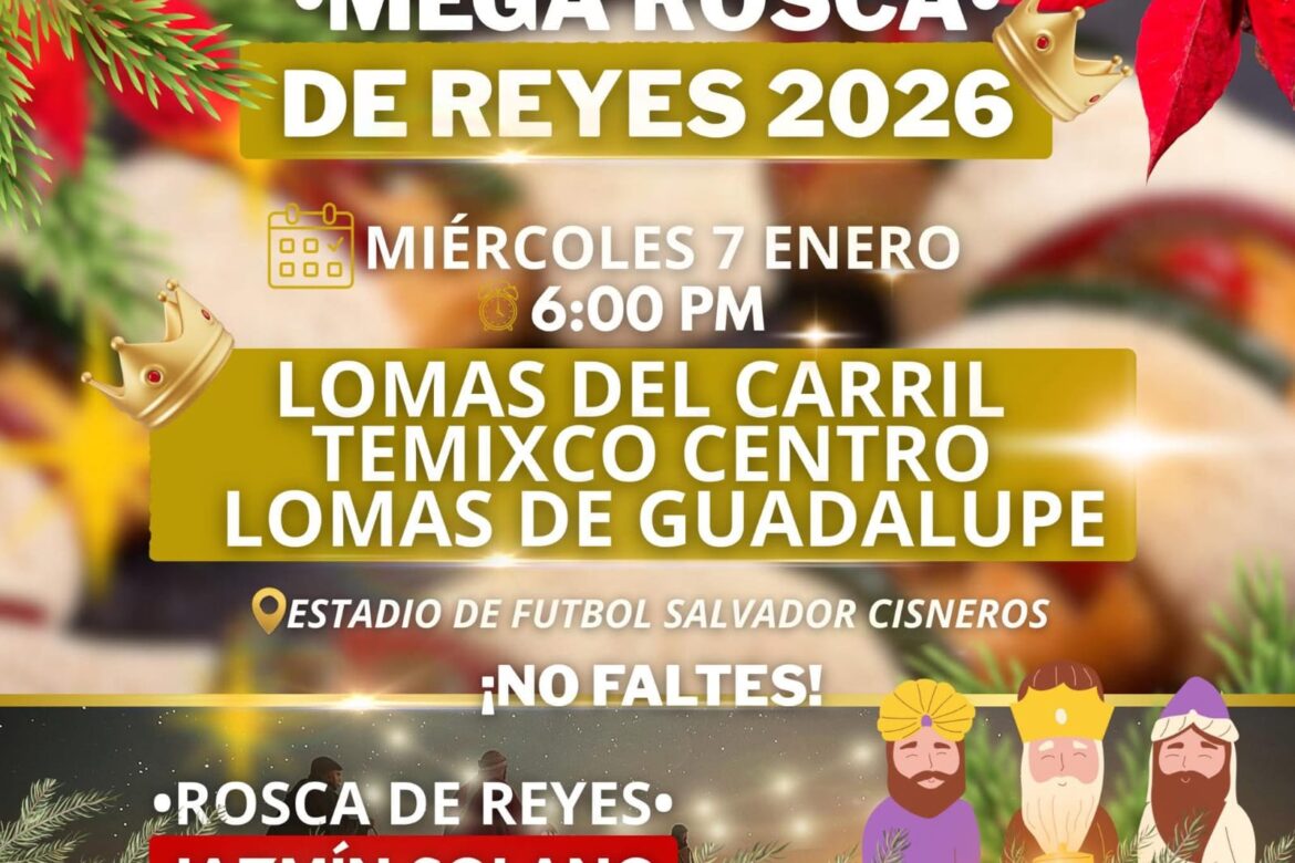 Vecinos de la colonia Lomas del carril, Temixco centro y lomas de Guadalupe, tu amiga Jazmin Solano te invita a la mega rosca de reyes 2026 la cita es: