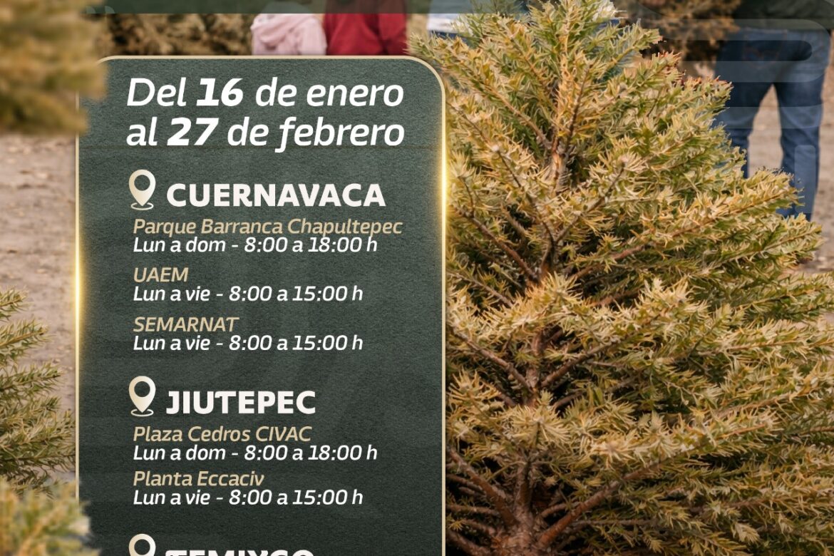 Con el objetivo de promover una disposición final responsable de los árboles de Navidad naturales y fortalecer la cultura de la sustentabilidad, el Gobierno del Estado de Morelos, a través de la Secretaría de Desarrollo Sustentable (SDS), invita a la ciudadanía a participar en el Acopio de Árboles de Navidad 2026, el cual se llevará a cabo del 16 de enero al 27 de febrero en los municipios de Cuernavaca, Jiutepec y Temixco.
