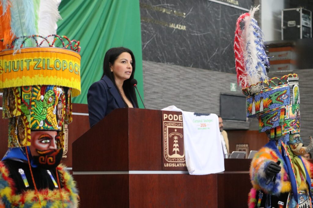 La legisladora destacó que, en 1860, Jesús Meza Villamar, conocido como “Chucho el Muerto”, compuso más de 72 sones que dieron vida al “Tzineolohua”, término que significa “el que brinca”. Esta obra musical constituye la base sonora del tradicional Chinelo y forma parte esencial del patrimonio cultural del estado.