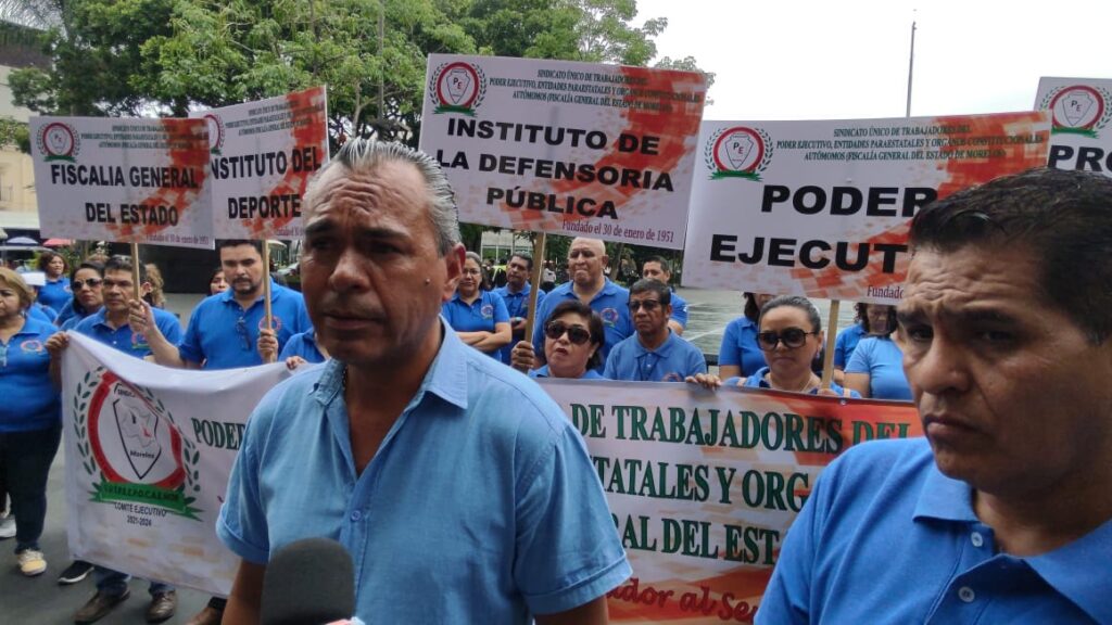 Integrantes del Sindicato Único de Trabajadores del Poder Ejecutivo, se manifestaron en la mañana de este viernes, en la sede del poder ejecutivo para exigir una entrevista con el gobernador Cuauhtémoc Blanco Bravo y discutir con él el incremento al salario para el gremio. Con pancartas en las manos los delegados sindicales urgieron a gritos la reunión pronta por el mandatario Estatal para revisar sus condiciones laborales y salariales.