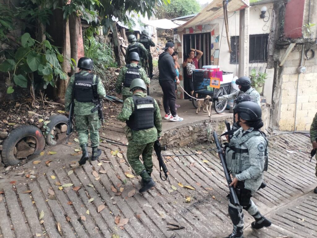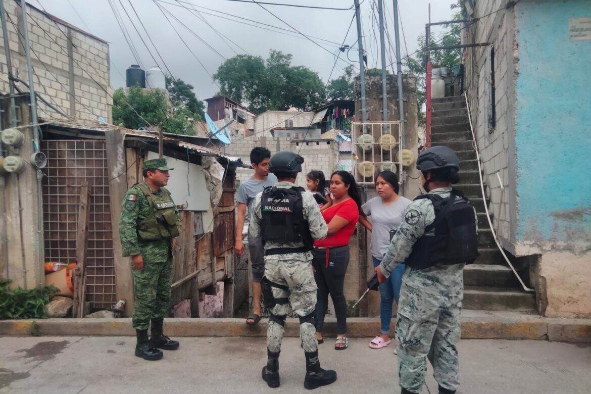 Elementos de la Guardia Nacional y Ejército Mexicano realizan recorridos por las calles de la populosa colonia “Los Patios de la Estación” en Cuernavaca.