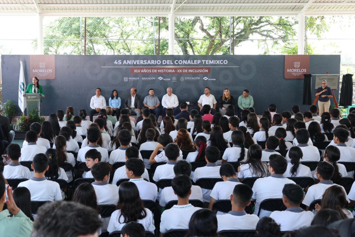 El Gobierno de “La tierra que nos une” que encabeza Margarita González Saravia, a través de la Secretaría de Educación, participó en la conmemoración del 45 Aniversario del Colegio Nacional de Educación Profesional Técnica (Conalep Morelos) plantel Temixco, donde reconoció su compromiso con la formación técnica de excelencia. equidad, inclusión y el desarrollo social de la comunidad.