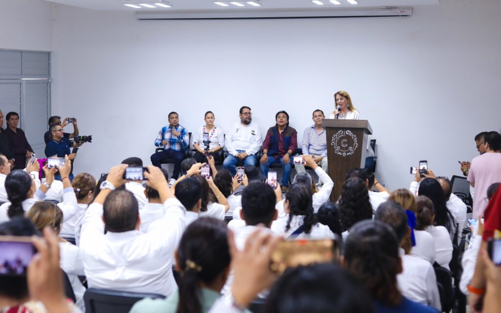 La gobernadora electa dialogó con la comunidad académica y estudiantil de la Preparatoria Número Cinco en Puente de Ixtla