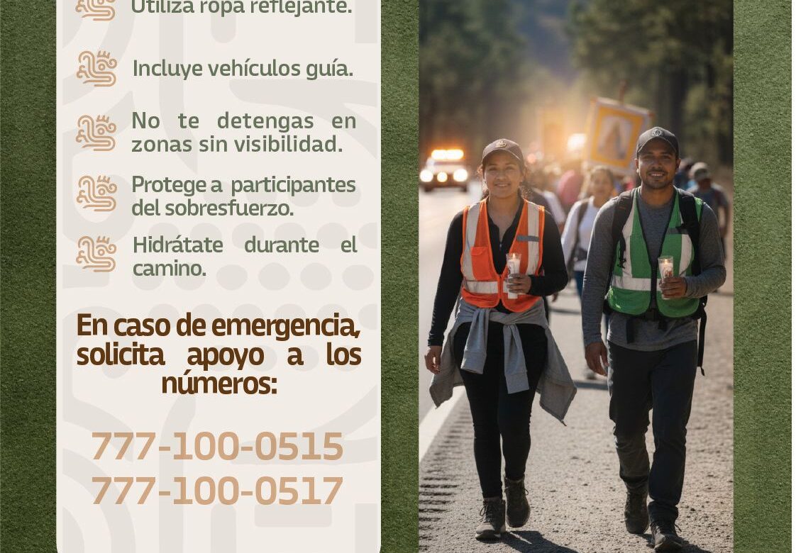 El Gobierno del Estado, mediante la Coordinación Estatal de Protección Civil Morelos (CEPCM), reitera el llamado a fortalecer la seguridad en el marco de las peregrinaciones que se realizan en esta temporada.