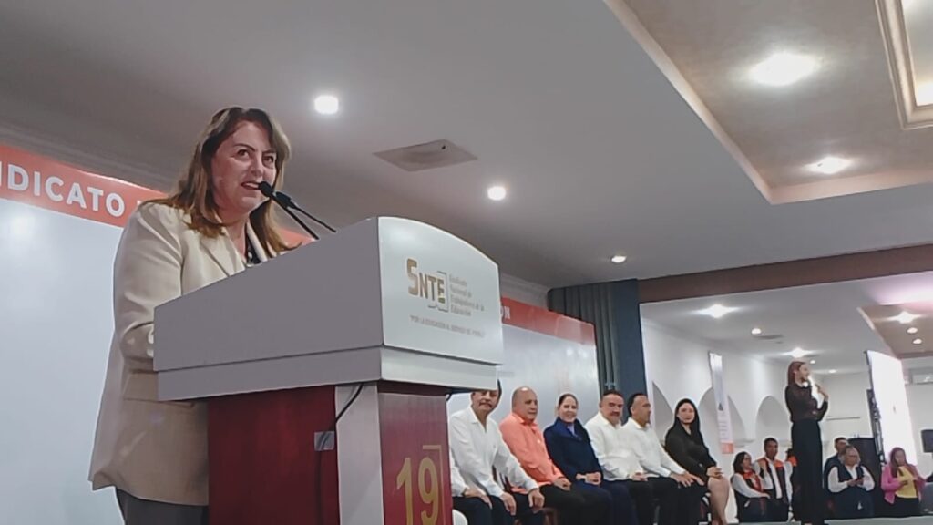 Entrevistada al término del IX Pleno Seccional Extraordinario de la Sección 19 del Sindicato Nacional de los Trabajadores de la Educación (SNTE); la mandataria reconoció