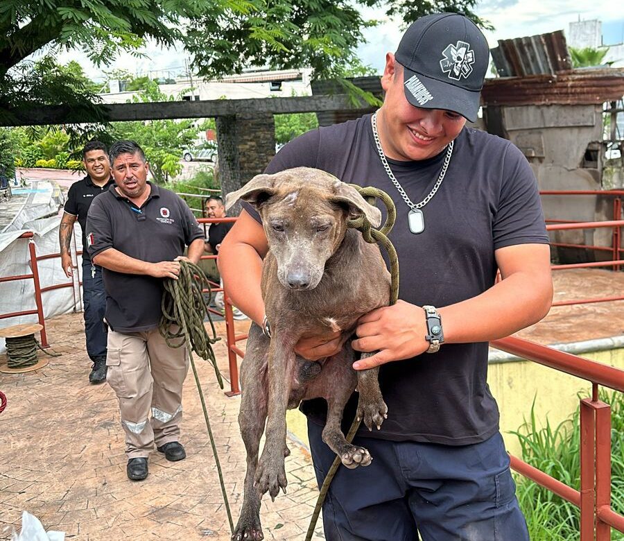 Personal de la Coordinación de Protección Civil de Temixco logró el rescate de un perro que se encontraba en la orilla del río Apatlaco, a la altura del puente Las Palomas, en la colonia centro.