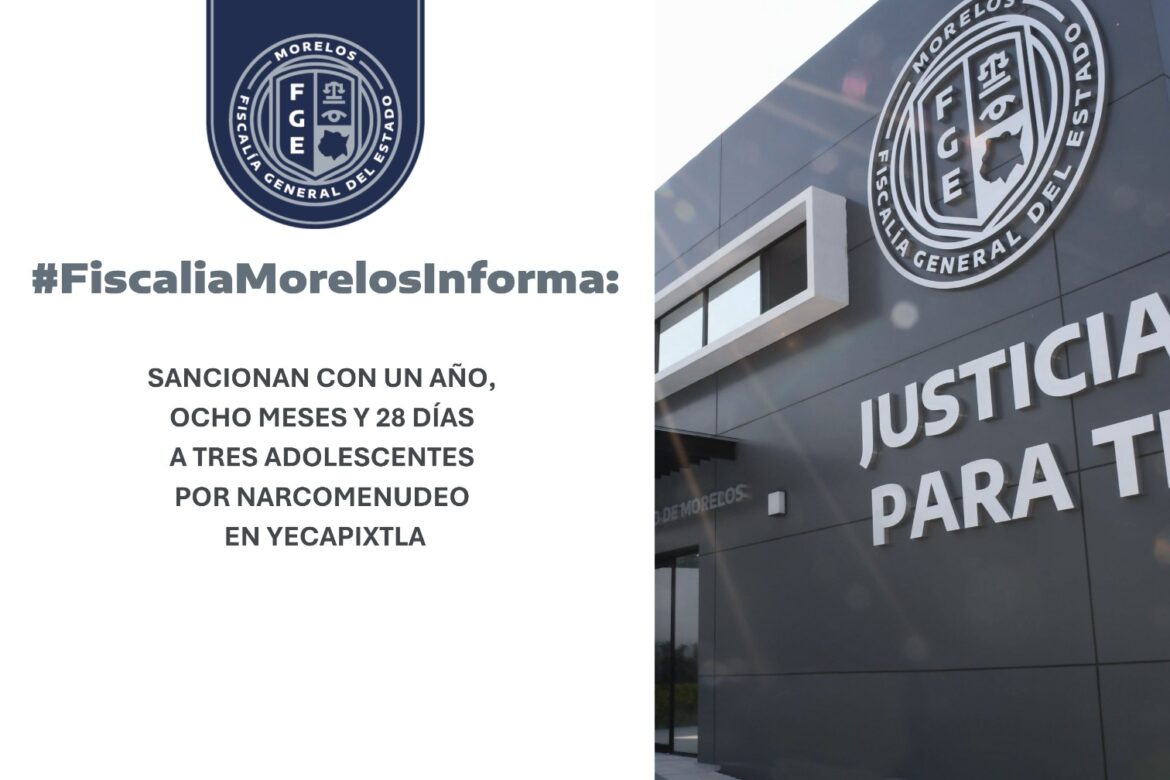 Una sanción socioeducativa de un año, ocho meses y 28 días de internamiento preventivo para tres adolescentes en conflicto con la ley, obtuvo la Fiscalía Regional Oriente, tras ser asegurados en el municipio de Yecapixtla, por la conducta antisocial de narcomenudeo con fines de suministro de metanfetamina.