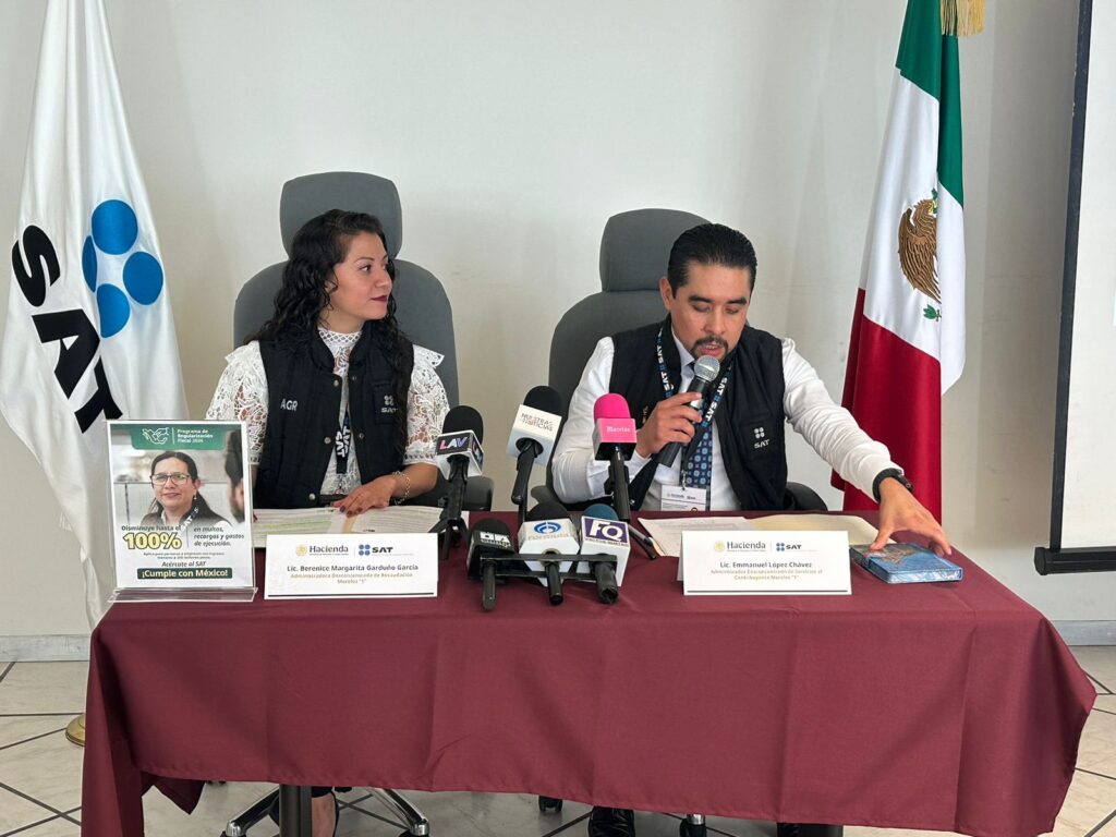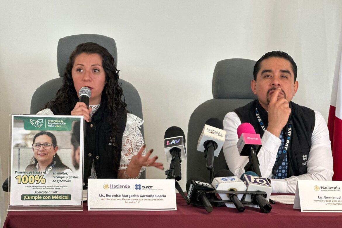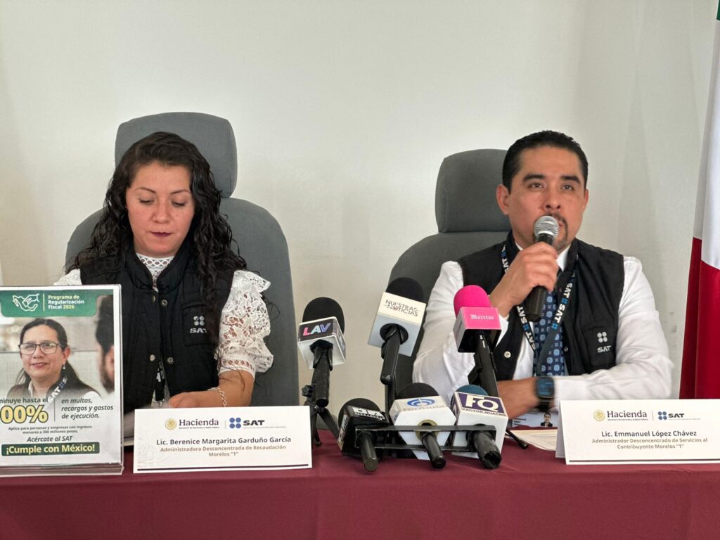 Cuernavaca, Morelos.– En rueda de prensa encabezada por la Lic. Berenice Margarita Garduño García, Administradora Desconcentrada de Recaudación Morelos “1”, y el Lic. Emmanuel López Chávez, Administrador Desconcentrado de Servicios al Contribuyente de Morelos “1”, autoridades del Servicio de Administración Tributaria (SAT) dieron a conocer información clave para las y los contribuyentes en la entidad.